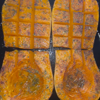 I know some people half-cook their squash before roasting — it softens the texture and makes scoring easier. You can microwave for 5–6 minutes or roast lightly until just tender.