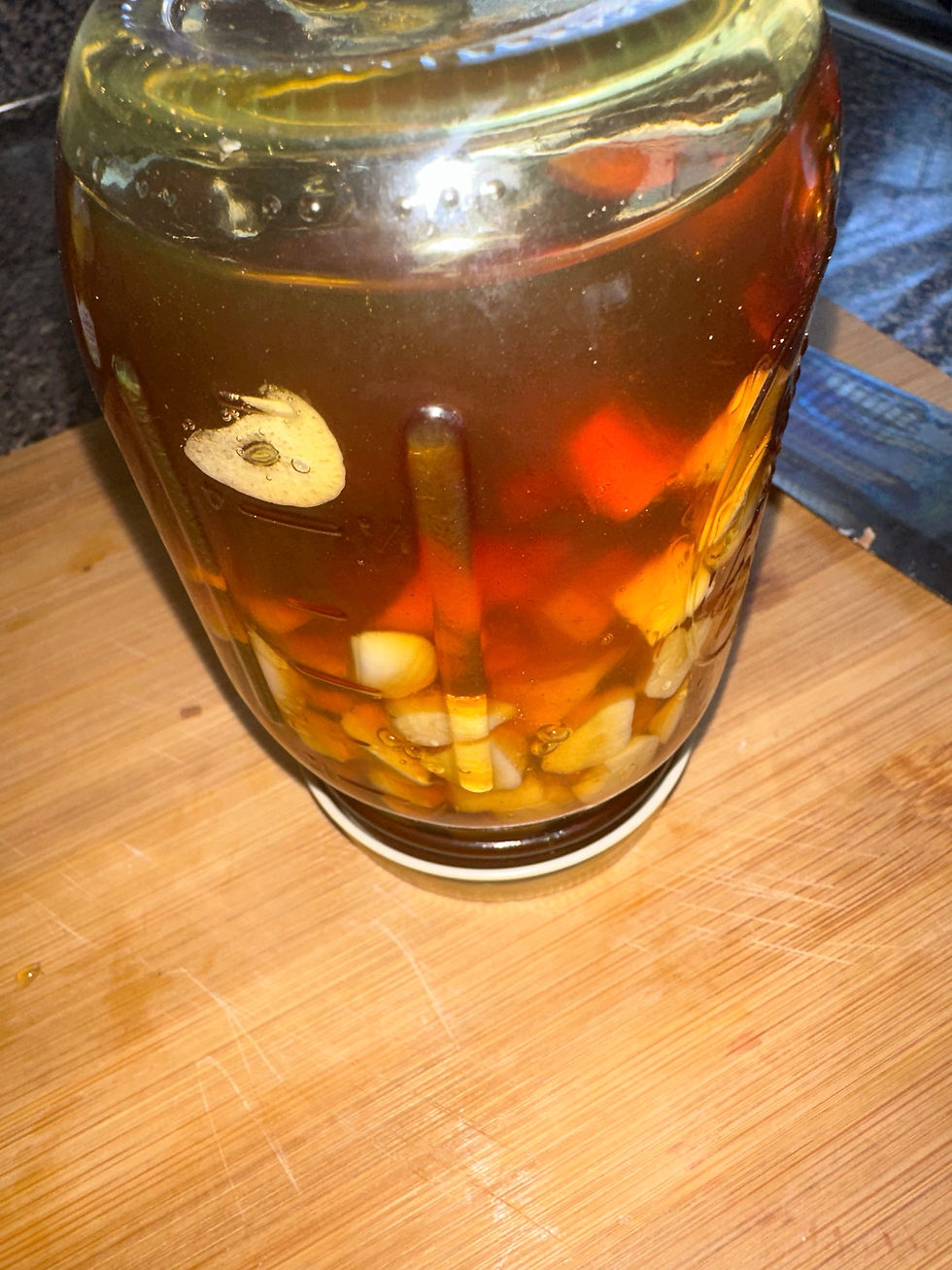 • After 7-10 days, your fermented garlic and honey cinnamon mixture is ready to use! Store it in the refrigerator to slow down fermentation and preserve its freshness. This mixture will last for several months, continuing to enhance in flavor.